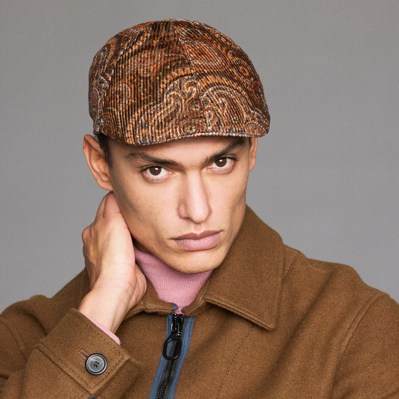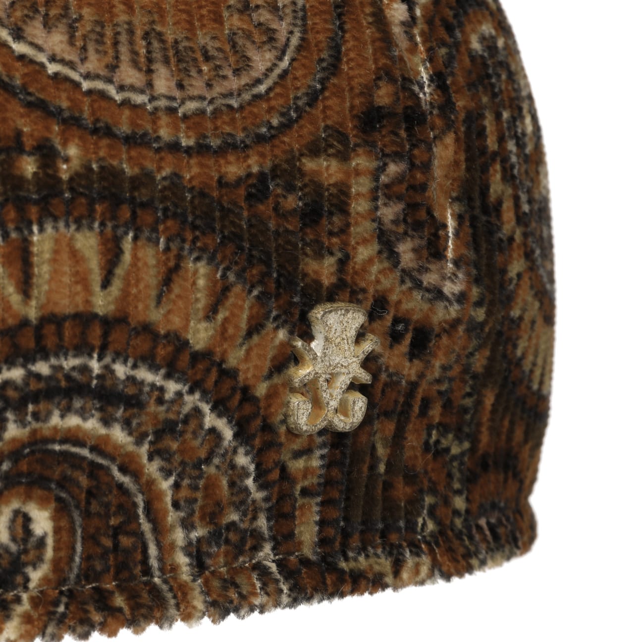 Die trendige Flatcap im Retro-Stil besticht durch ihr faszinierendes Paisleymuster, das nostalgische Erinnerungen an die 70er Jahre weckt. Sie ist aus feinem Baumwollcord gefertigt und bietet dank einer leichten Wattierung angenehme Wärme selbst an windigen Herbsttagen. Für zusätzlichen Komfort sorgt ein sanftes Innenfutter aus atmungsaktiver Viskose und Acetat. Das Design der stilvollen Schiebermütze stammt übrigens direkt aus Deutschland.