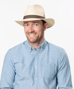 Dieser Herrenhut ist ein handgefertigter Traveller aus Ecuador, der dank seines elastischen Panamastrohs erstklassige Trageeigenschaften aufweist. Er sitzt leicht und bequem am Kopf und spendet durch seine breite Krempe angenehmen Schatten. Sein attraktives Design wird durch eine doppellagige Ripsbandgarnitur mit feinen Ziernähten sowie einer tropfenförmigen Krone unterstrichen. Ein gepolstertes Stoff-Futterband sorgt für zusätzlichen Komfort. Der Hut repräsentiert den markanten Michael Zechbauer – Style for Men.