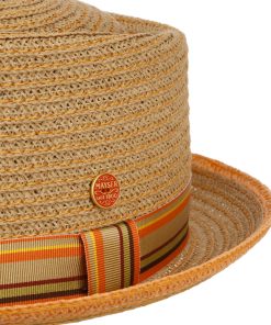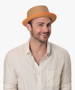 Für echte Charakterköpfe. Langweilige Hüte tragen kann jeder. Mit dieser farbstarken Kopfbedeckung beweist Mann Mut zum eigenen Stil. Der originelle Pork Pie mit seiner charakteristisch runden Form und der nach oben geneigten Krempe strahlt jede Menge Energie und Lebensfreude aus. Dazu passen die sorgsam aufeinander abgestimmten Farbtöne mit dem fein gestreiften Garniturband. Ein hoher Anteil an leichtem und gleichzeitig robustem Papierstroh garantiert maximalen Tragekomfort. Kann bei Bedarf zusammengerollt im Koffer transportiert werden.