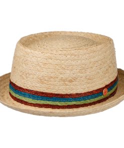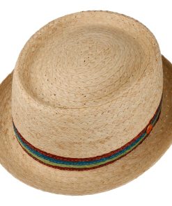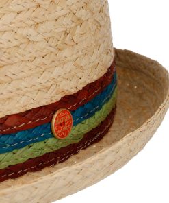 Die handgefertigte Kopfbedeckung aus Raffiastroh vermittelt mit ihrem unifarbenen Design und den farblich gestreiften Elementen rund um die Krone ein Gefühl von karibischem Südseeflair. Sie bietet dem Träger einen sommerleichten, sorglosen Komfort. Ob zu einem Hawaiihemd oder Sommerkleid getragen, oder als Begleiter für abendliche Clubbesuche – sie findet immer Anklang. Hergestellt in der Slowakei, ist dieses Stück eine echte Bereicherung jeder Garderobe.