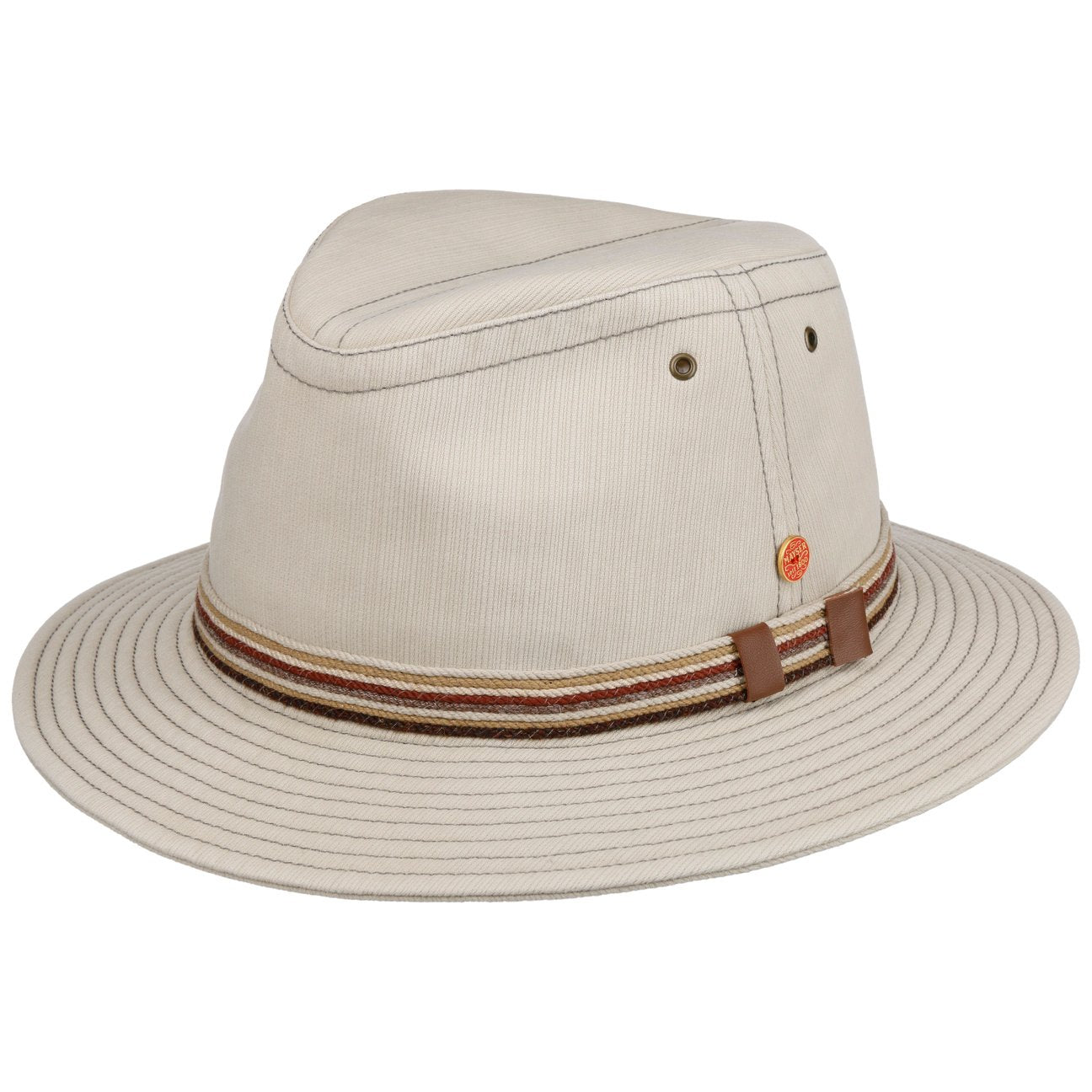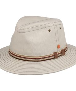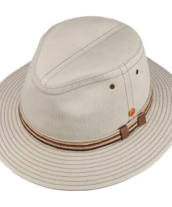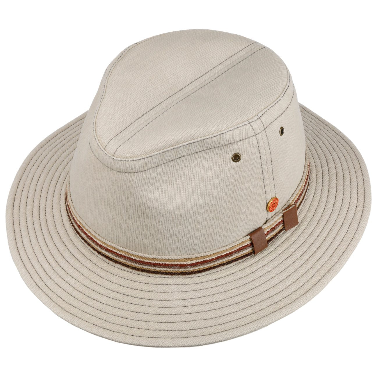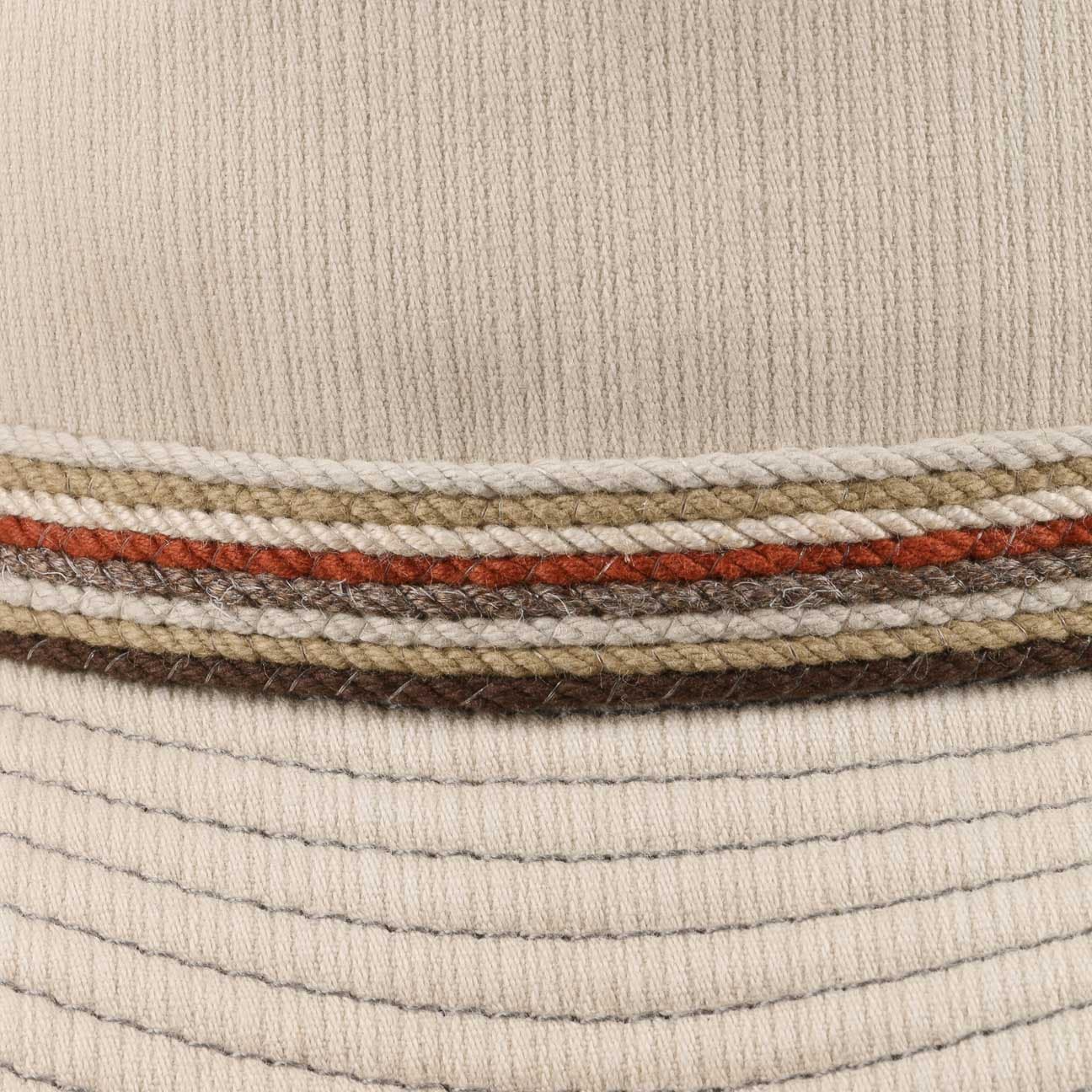 Der stilvolle Herrenhut zeichnet sich durch seine strukturierte Baumwolle in einer dezenten Used-Optik aus, die ihm einen authentischen Outdoor-Look verleiht und gleichzeitig für ein angenehm natürliches Tragegefühl sorgt. Er ist mit seitlichen Luftösen sowie einem 80-fachen UV-Schutz ausgestattet – ideale Voraussetzungen für jegliche Abenteuer unter freiem Himmel. Mit seiner mehrreihigen Kordelgarnitur in erdigen Farben und Lederdetails betont der Hut seinen natürlichen Charme. Zudem bietet das gepolsterte Futterband zusätzlichen Komfort, während stoffunterlegte Nähte eine hohe Qualität gewährleisten.