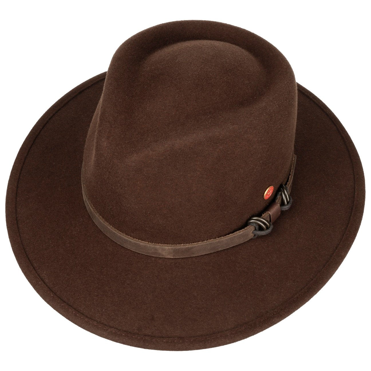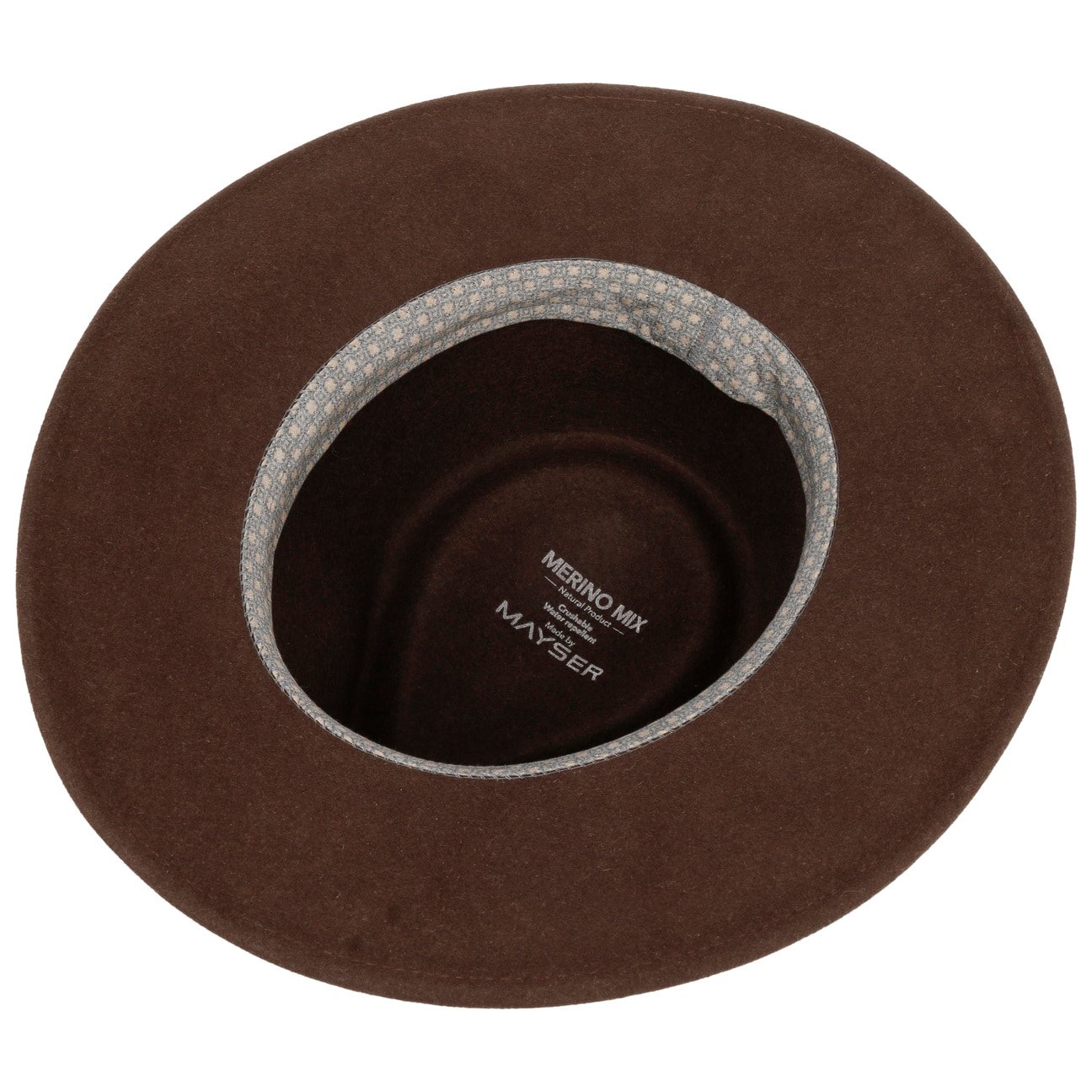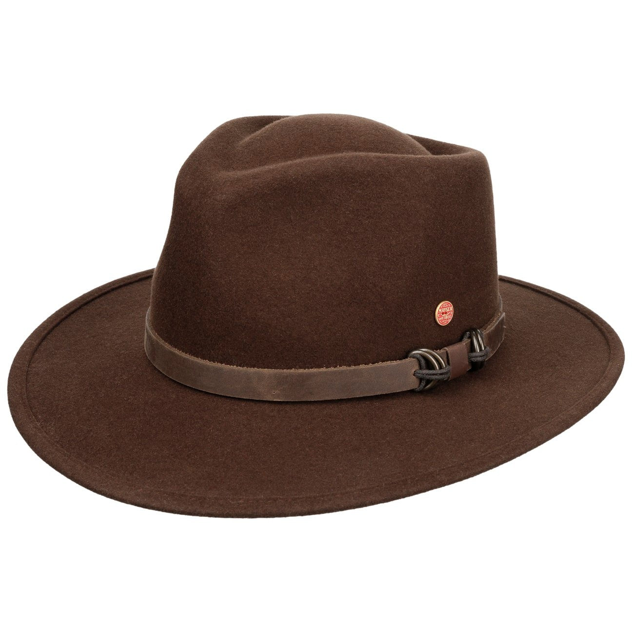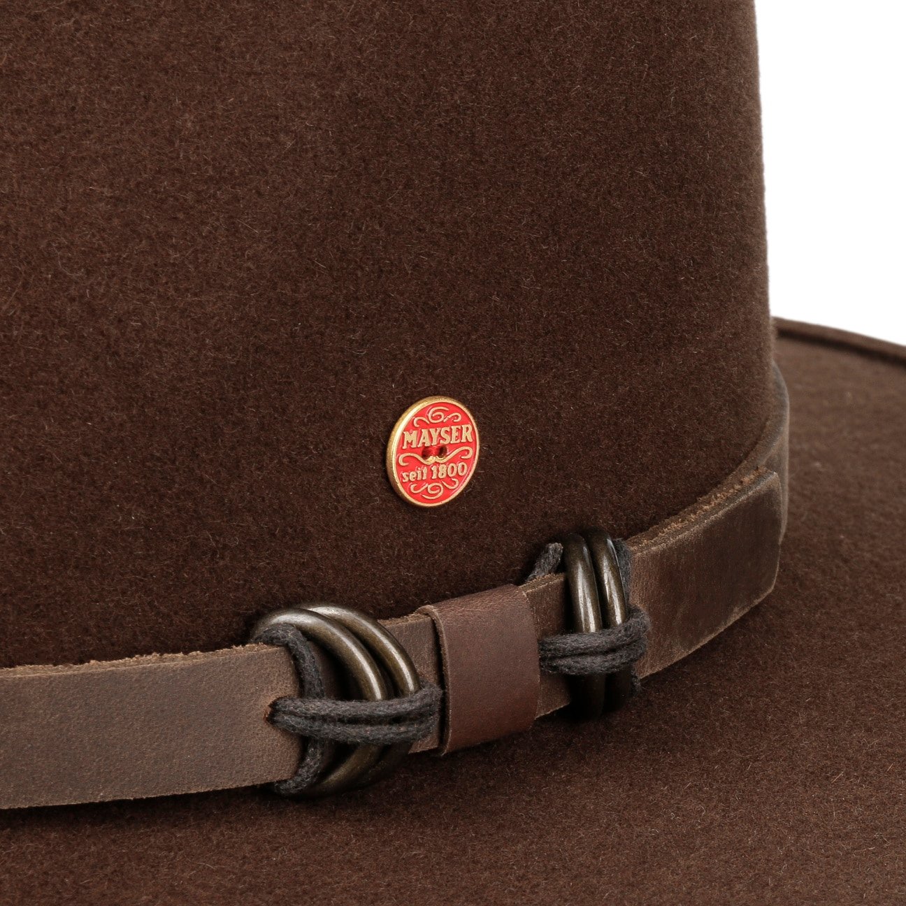 Ein Outdoorhut im Rodeo-Stil, perfekt für lange Spaziergänge mit dem Hund oder Arbeiten unter freiem Himmel an einem frischen Herbsttag. Die Materialmischung aus Woll- und Haarfilz hält nicht nur warm, sondern sorgt auch für eine optimale Belüftung. Seine breite Krempe bietet zudem einen wirksamen Schutz gegen Regen und Feuchtigkeit. Ein Garniturband aus echtem Leder setzt sich elegant von der Hutkrone ab und verleiht ihm das gewisse Etwas. Der wasserabweisende Traveller ist knautschfest sowie resistent gegen Knittern – ein Qualitätsprodukt hergestellt in der EU.