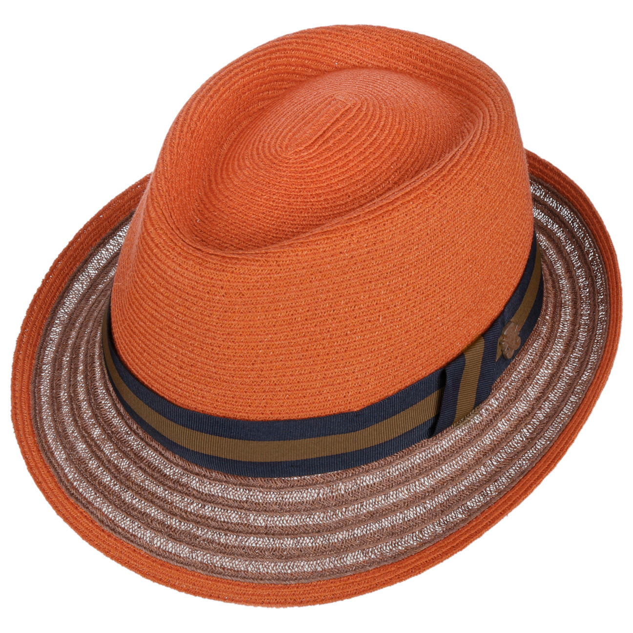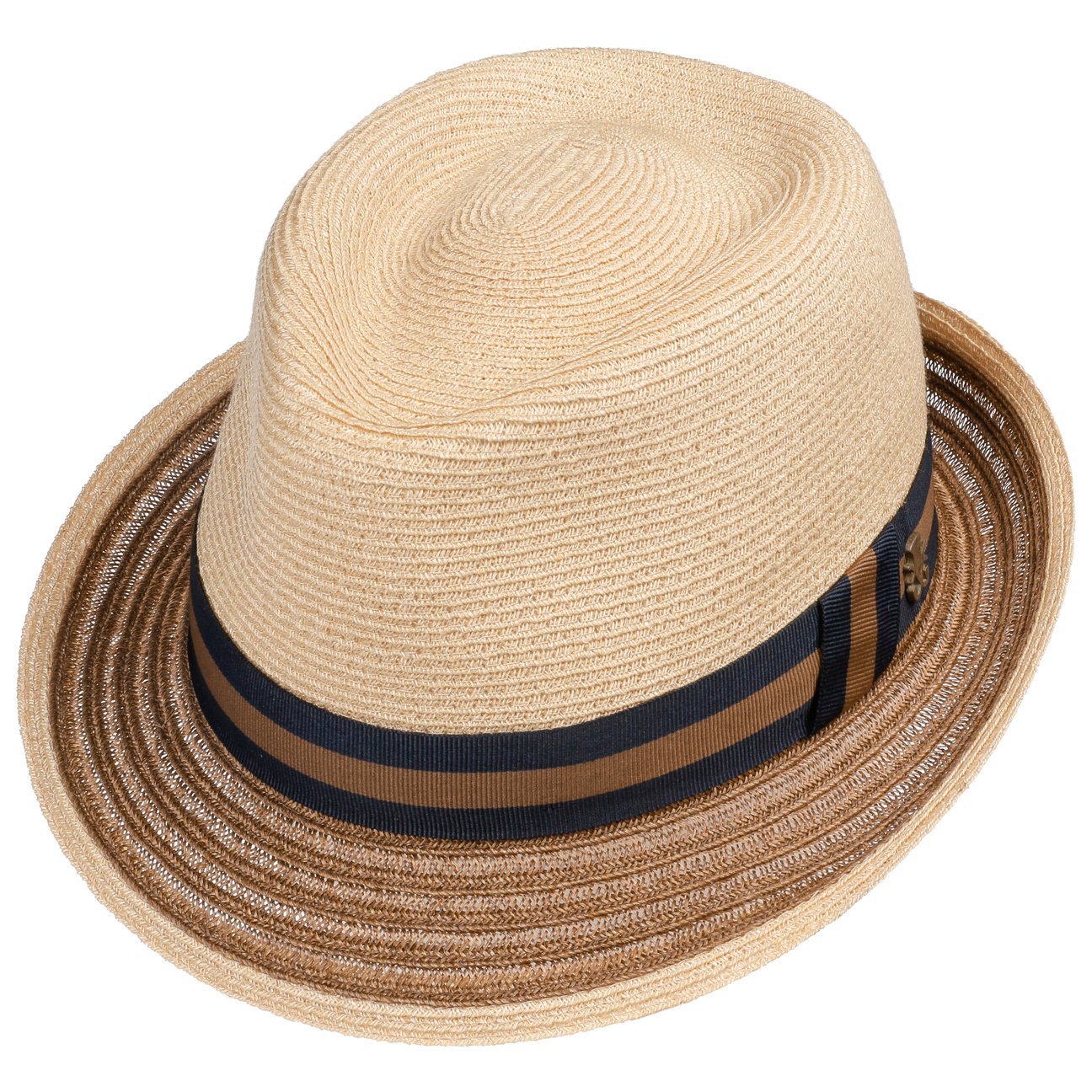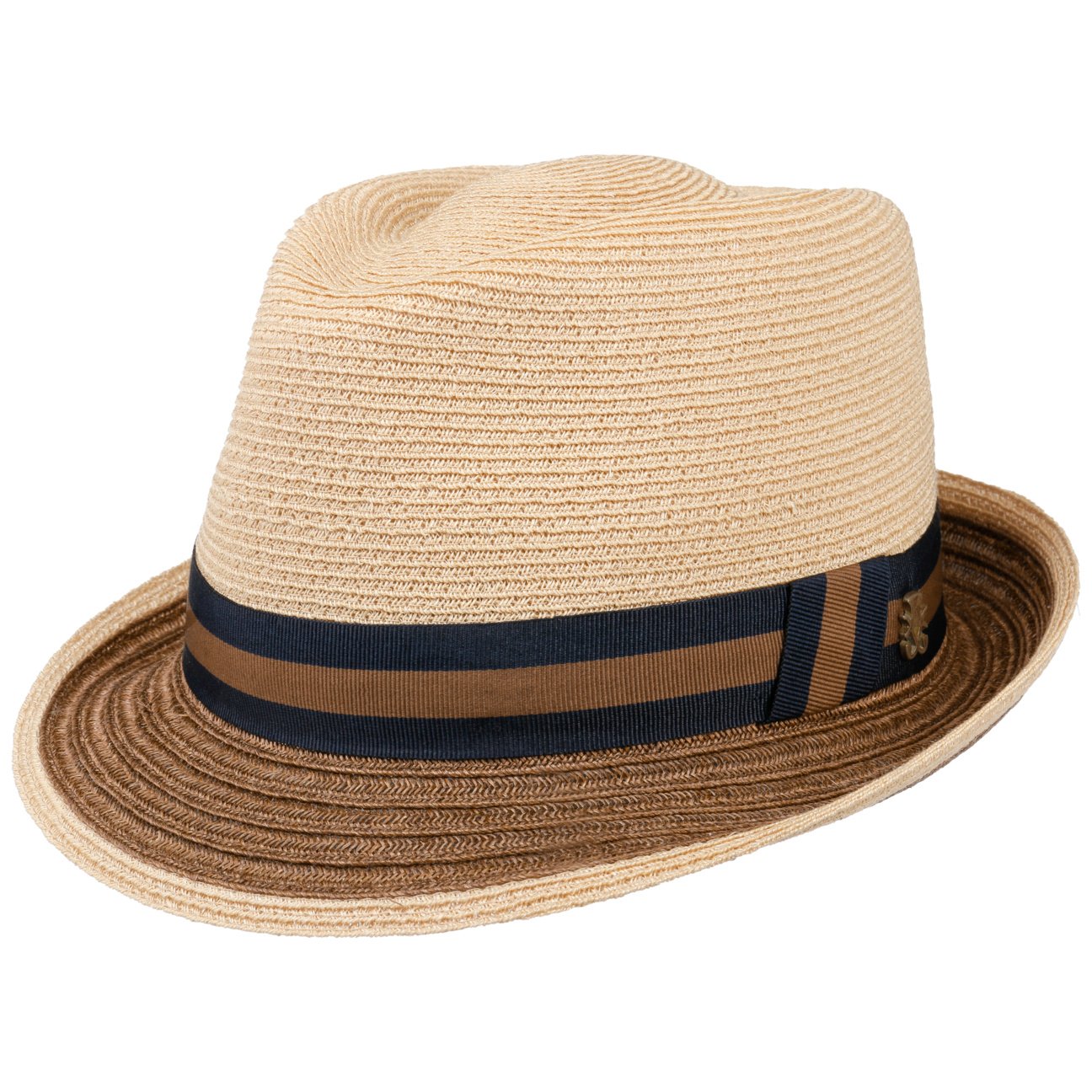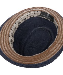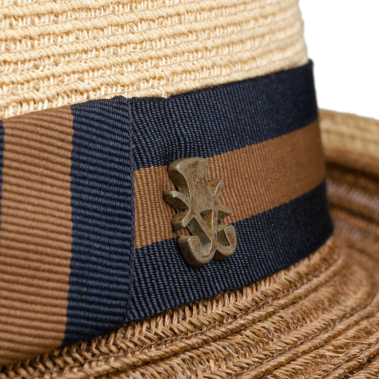 Ein Trilby-Hut, der durch sein beeindruckendes Bortendesign auffällt. Ein Highlight ist die traditionelle Fertigungsmethode, die seit 1833 angewendet wird. Hierbei entsteht der Hut aus einer endlosen Borte, welche auf historischen Maschinen vernäht wird. Sein erlesener Stil mit einem Hauch von Klassik betont den hohen Wert dieses handgefertigten Fedoras. Der Hut besteht aus Hanfstroh und Baumwolle und wurde in der EU produziert.