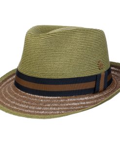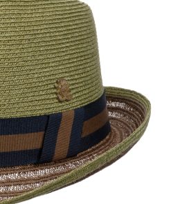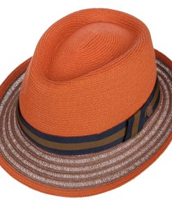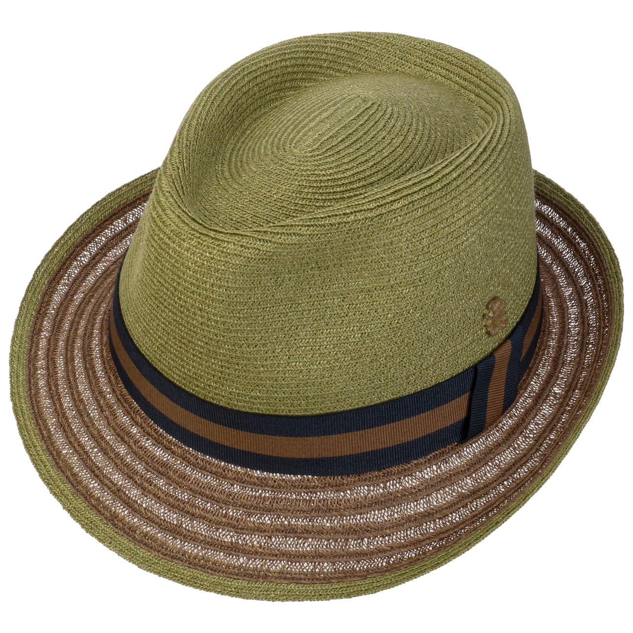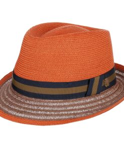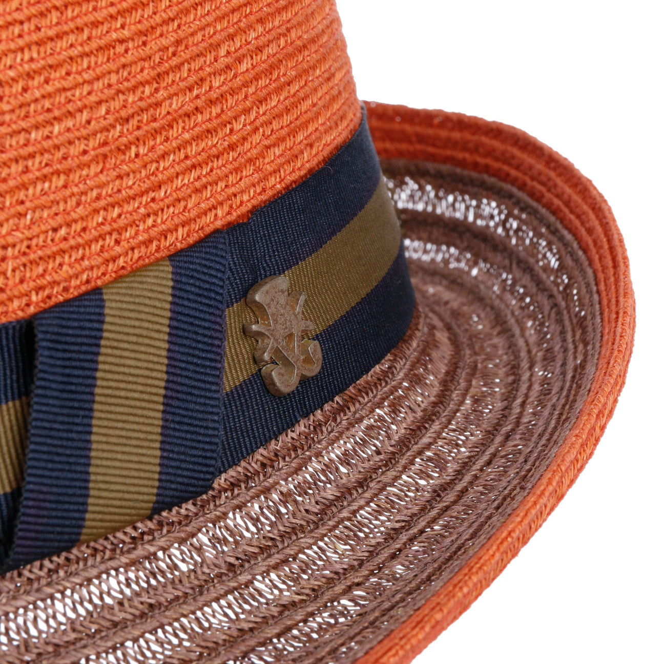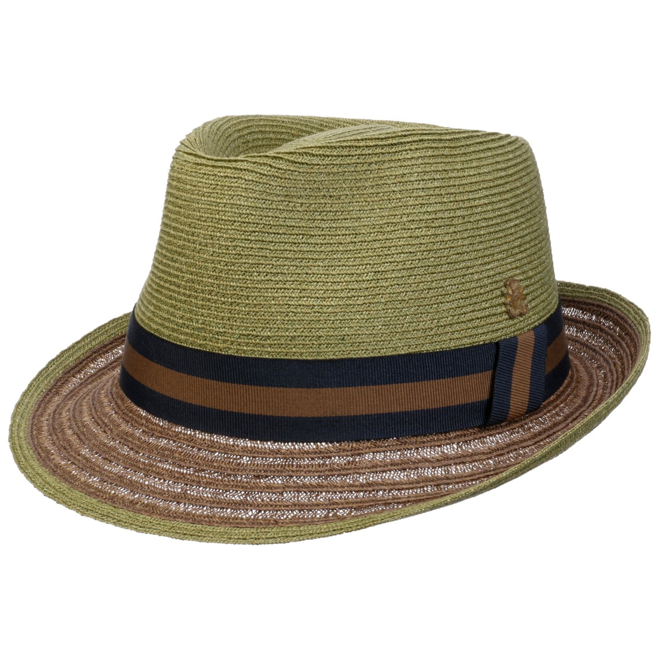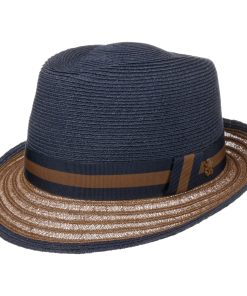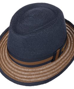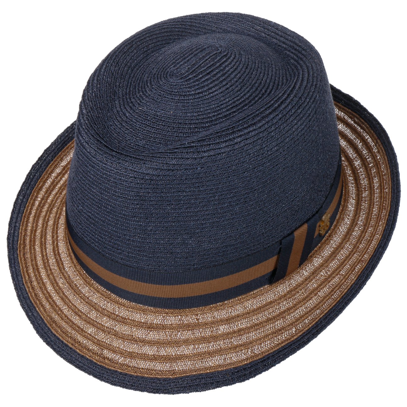 Ein Trilby-Hut, der durch sein beeindruckendes Bortendesign auffällt. Ein Highlight ist die traditionelle Fertigungsmethode, die seit 1833 angewendet wird. Hierbei entsteht der Hut aus einer endlosen Borte, welche auf historischen Maschinen vernäht wird. Sein erlesener Stil mit einem Hauch von Klassik betont den hohen Wert dieses handgefertigten Fedoras. Der Hut besteht aus Hanfstroh und Baumwolle und wurde in der EU produziert.