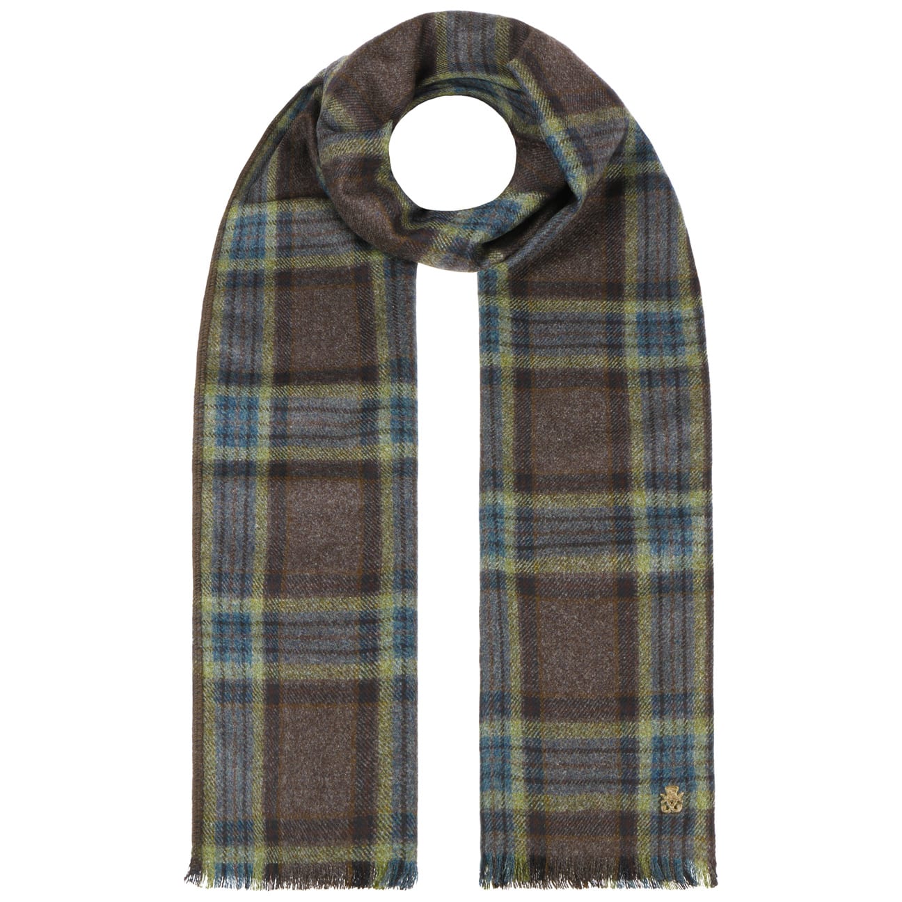Der in der EU hergestellte Winterschal ist ein zeitloses Accessoire, das von Herbst bis ins Frühjahr getragen wird. Sein hochwertiges und wärmendes Material aus reiner Schurwolle bietet optimalen Komfort. Das elegante Karomuster mit Überkaros sowie die feinen Fransen an beiden Enden verleihen ihm einen modischen Touch. Dieser Webschal lässt sich hervorragend zu verschiedenen Outfits kombinieren und bereichert jede Garderobe durch seinen trendigen Charme. Ein dezentes metallisches Emblem zeugt von seiner exzellenten Qualität.