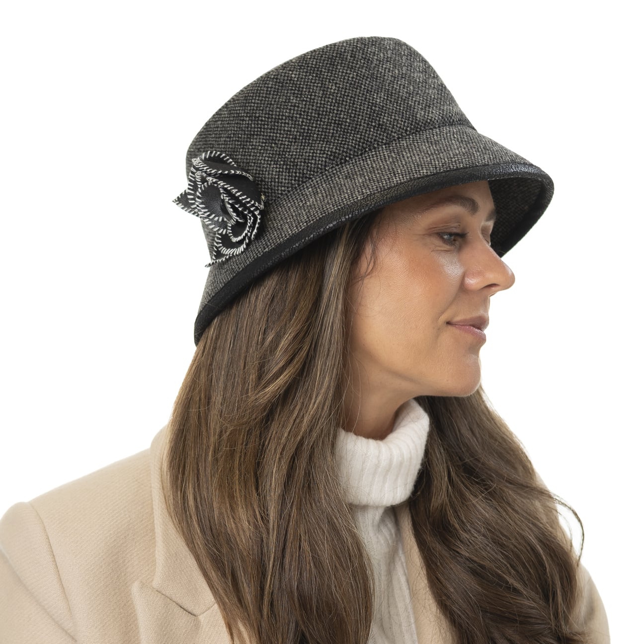Der melierte Walkstoff dieses Bucket Hats in gedeckten Farben harmoniert perfekt mit der winterlichen Garderobe. Die üppige Blüte mit kontrastfarbigem Saum verleiht dem Hut einen einzigartigen Stil, während die umsäumte Krempe Ruhe und Ausgewogenheit hervorruft. Mit 100% Wolle bietet dieser Hut angenehme Wärme und das leichte Baumwollfutter sorgt für Tragekomfort. Darüber hinaus ist er knautsch- und knitterfest, was ihn zum idealen Begleiter macht.Produktinformation|