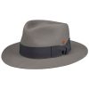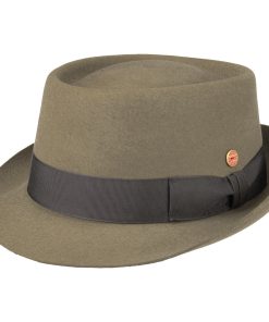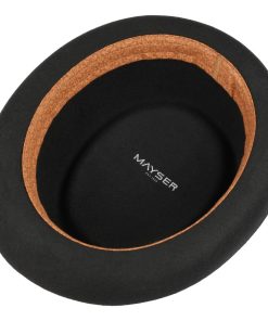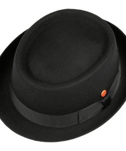 Dieser Pork Pie Hut, aus weichem Wollfilz gefertigt, besticht durch seine einheitliche Farbgebung und sorgfältige Handarbeit. Ein Futterband gewährleistet optimalen Komfort beim Tragen. Die elegant geformte Krempe und die gleichmäßig eingedellte Krone unterstreichen das stilvolle Design des Filzhuts. Eine farblich abgestimmte Ripsbandgarnitur mit Schleife rundet den Look gekonnt ab. Der Hersteller hat sich sowohl auf einem seitlichen Pin als auch in der Krone mit einem Qualitätsversprechen verankert – handgefertigt in der EU.