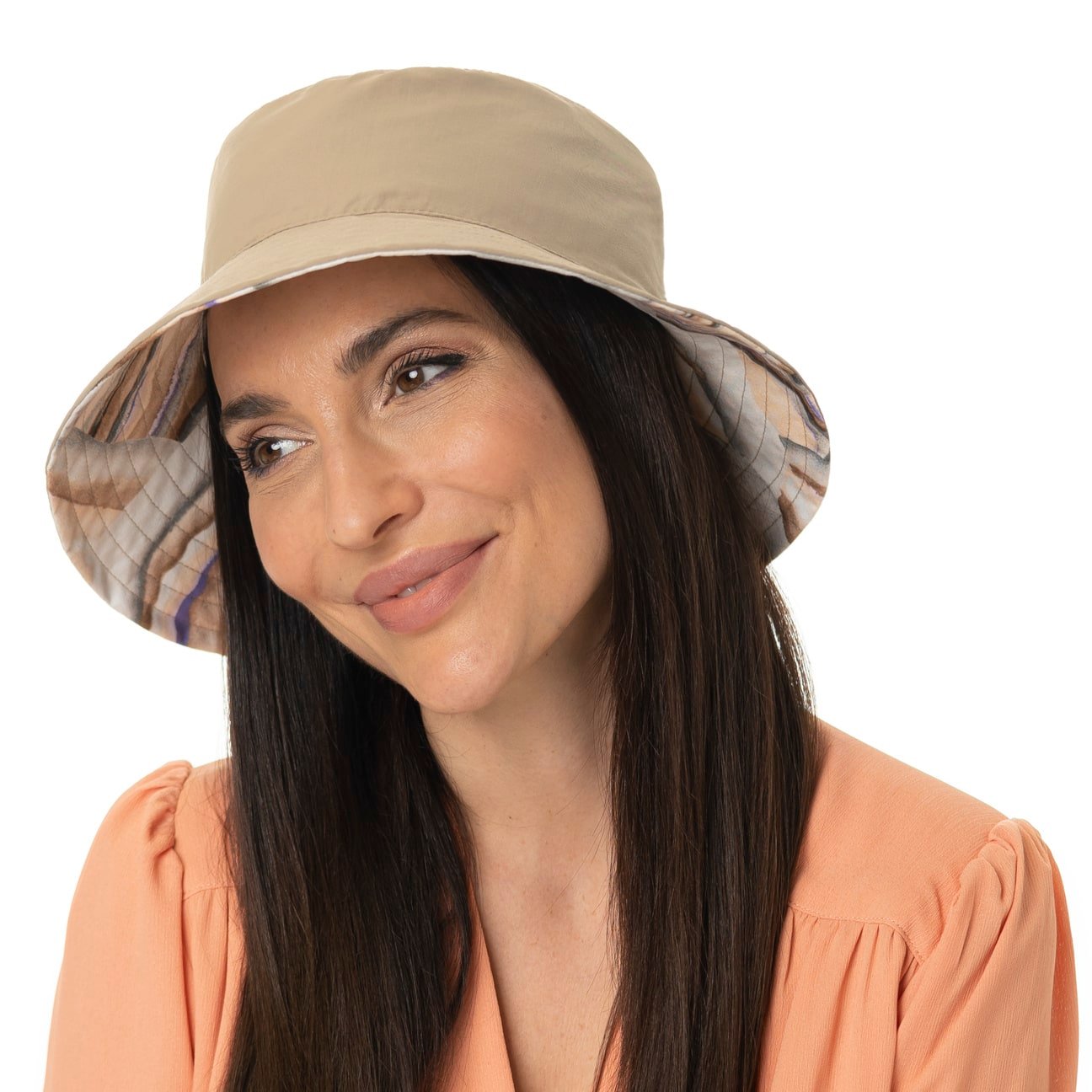 Ein Wendehut ist mehr als ein modisches Accessoire; er bietet zwei verschiedene Looks in einem und lässt sich mühelos anpassen. Die eine Seite präsentiert sich schlicht, ideal für gemusterte Outfits, während die andere einen farbigen Akzent setzt – perfekt zu unifarbenen Teilen. Ein einfaches Umdrehen genügt, um den Look zu verändern. Das Material des Hutes ist knautschfrei und hält auch einer langen Reise stand. Zudem gewährt der Hut effizienten UV-Schutz – somit vereint er Stil und Funktionalität auf ideale Weise.