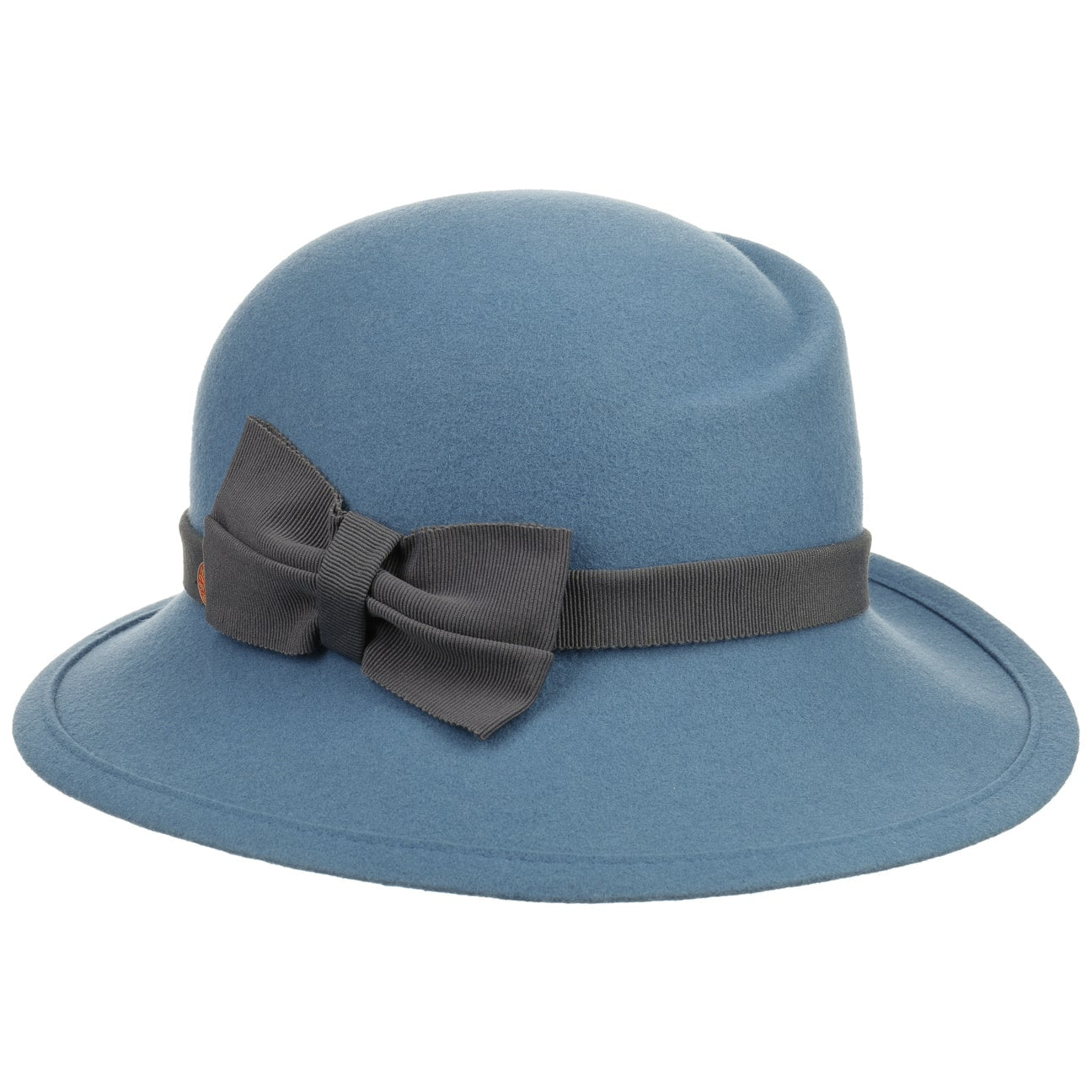 Mit seiner femininen und eleganten Ausstrahlung ist der Glockenhut ein wahrer Blickfang. Hergestellt in liebevoller Handarbeit, besteht er aus reiner Wolle – ideal für die kühlen Monate des Jahres. Ein besonderes Detail stellt das Ripsband mit drapierter Schleife dar, welches dem Hut seinen dekorativen Charakter verleiht. Dank eines Stretchfutterbands bietet er zudem einen angenehmen Tragekomfort. Der Filzhut wird in einer Größe angeboten und wurde innerhalb der EU gefertigt.
