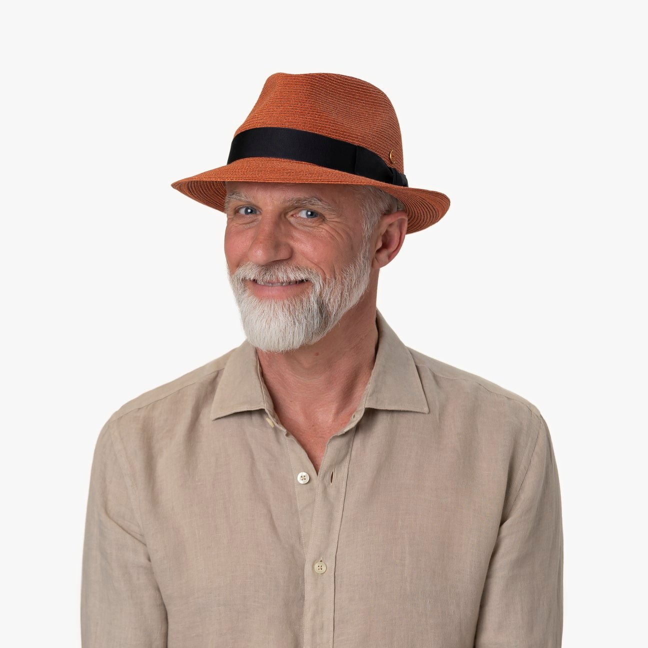 Dieser Strohhut besticht durch seine sommerliche Leichtigkeit und den hohen Tragekomfort, dank der Materialzusammensetzung aus Hanf und Baumwolle. Seine knautschbaren Eigenschaften erlauben es, ihn jederzeit zusammengefaltet zu transportieren – ohne dass er dabei seinen authentischen Look verliert. Das einfarbig melierte Design wird von einer farblich abgesetzten Ripsbandgarnitur akzentuiert. Ein Markenpin rundet das Erscheinungsbild des in der EU gefertigten Hutes stilvoll ab.