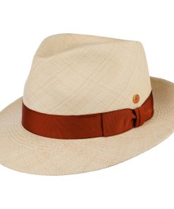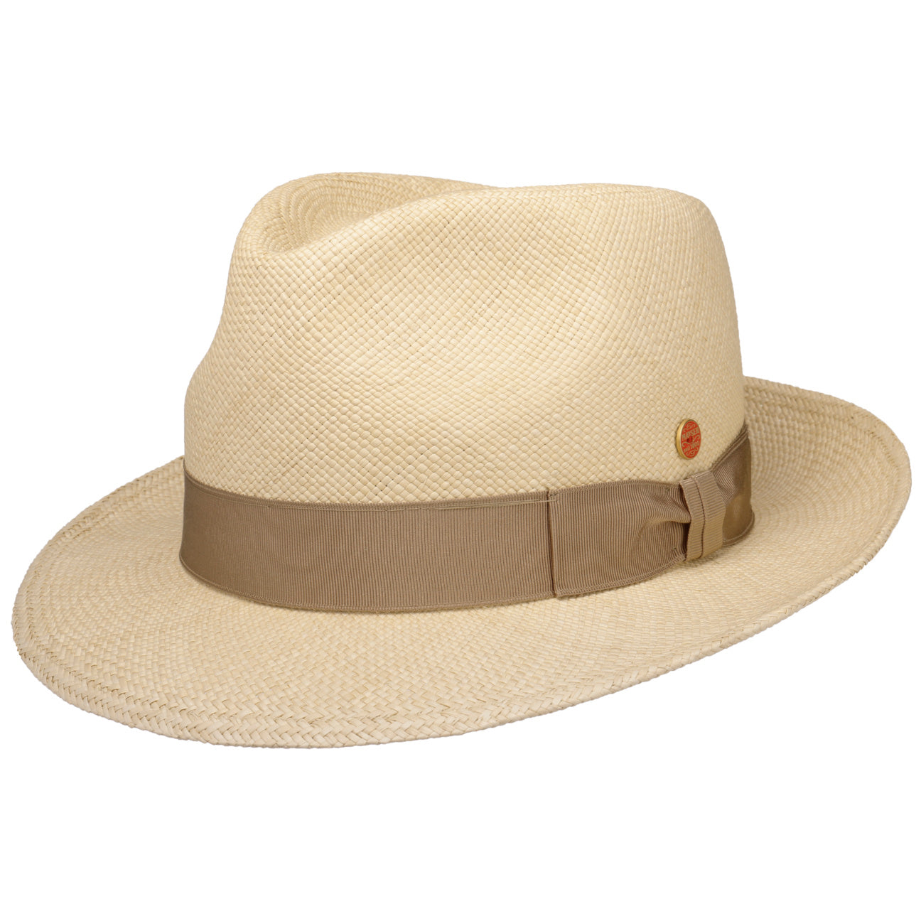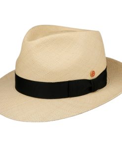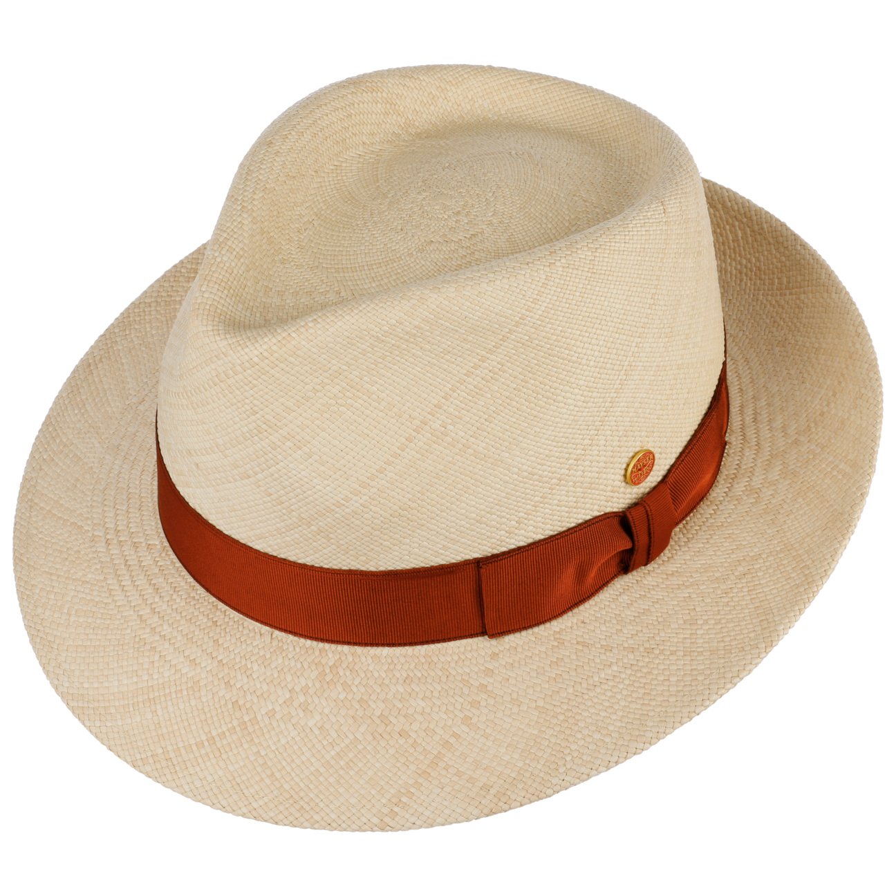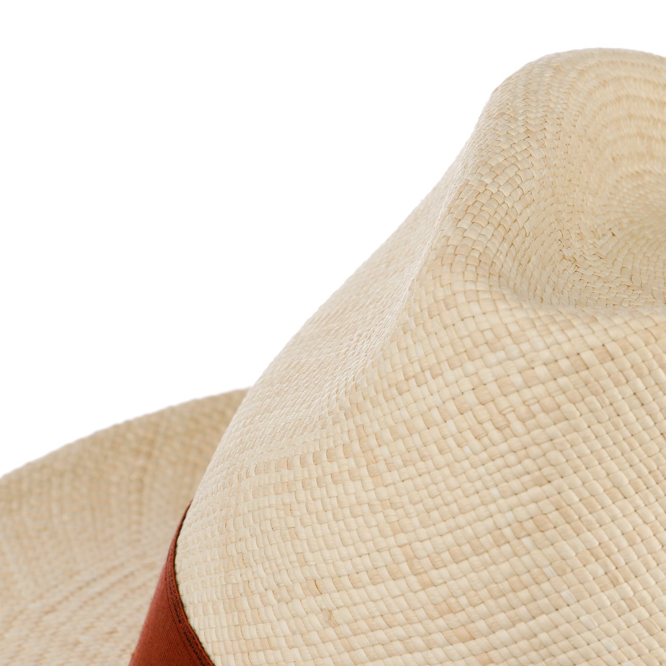 Mit einer Kombination aus Funktionalität und raffinierter Eleganz besticht ein handgefertigter Fedora. Seine breite Krempe und das sorgsam verarbeitete Material bieten einen hohen UV-Schutz, während er sich auch als wasserabweisend zeigt. Der Strohhut fasziniert mit der charakteristischen Form eines Bogarthutes sowie einem Ripsband mit Schleife. Hergestellt ist es aus Panamastroh in traditioneller Brisa-Flechtung – eine wahre Meisterleistung europäischer Handwerkskunst.