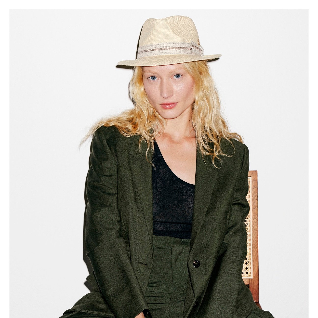 Mit seiner eleganten Form und funktionalen Eigenschaften beweist dieser Bogarthut, dass Stil und Praktikabilität Hand in Hand gehen können. Hergestellt aus reinem Panamastroh ist er nicht nur ein Blickfang, sondern bietet auch einen hohen UV-Schutz von 80 nach dem UV-Standard 801 (Hohenstein). Erstaunlicherweise trotzt der Hut sogar Regenschauern dank seiner Wasserabweisung. Somit steht einem stylischen Auftritt bei jedem Wetter nichts im Wege. Ein treuer Begleiter, gefertigt in der EU.