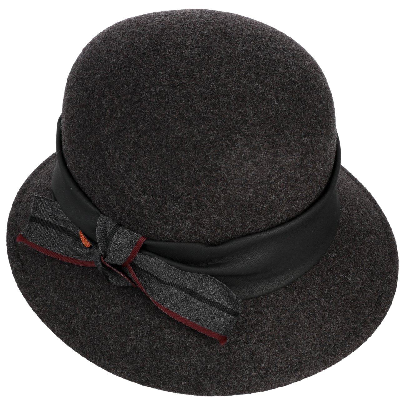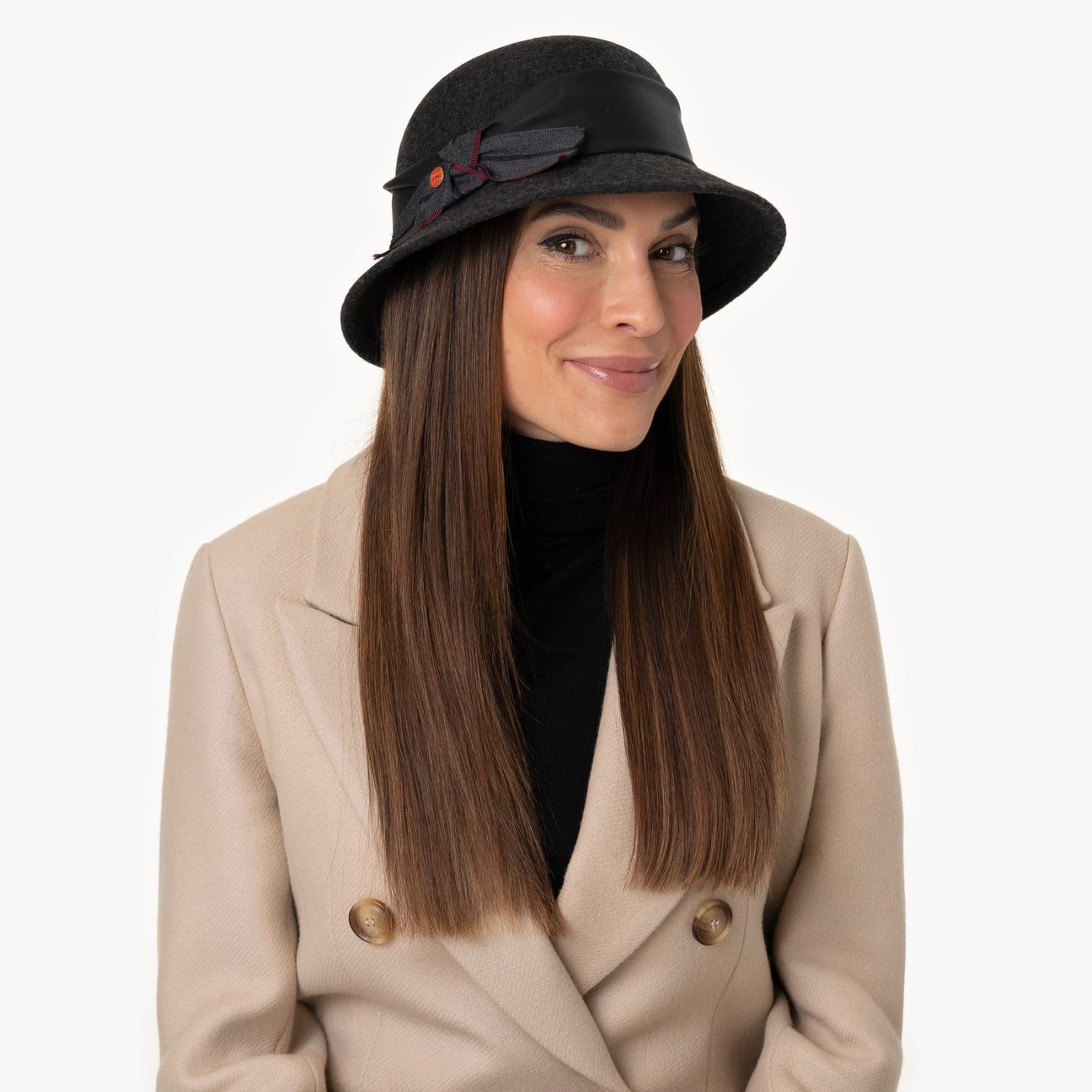 Der handgefertigte Glockenhut bringt den Charme der 20er Jahre in die Moderne. Aus reiner Wolle hergestellt, besticht er durch eine ästhetische Form und schlichte Raffinesse. Ein raffiniertes Ledergarniturband mit Schleife setzt einen zusätzlichen Akzent auf dem einfarbig melierten Hut. Der Wollhut harmoniert perfekt mit jeder Haarlänge und verleiht sowohl eleganten als auch ausgefallenen Outfits das gewisse Etwas. Für höchsten Tragekomfort sorgt ein eingearbeitetes Stretchfutterband – gefertigt in Europa.
