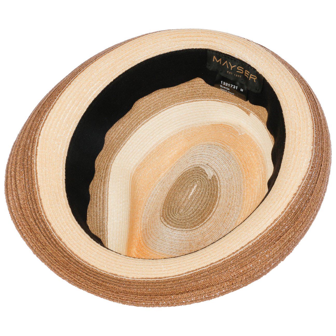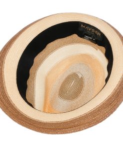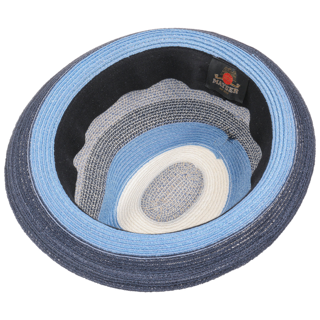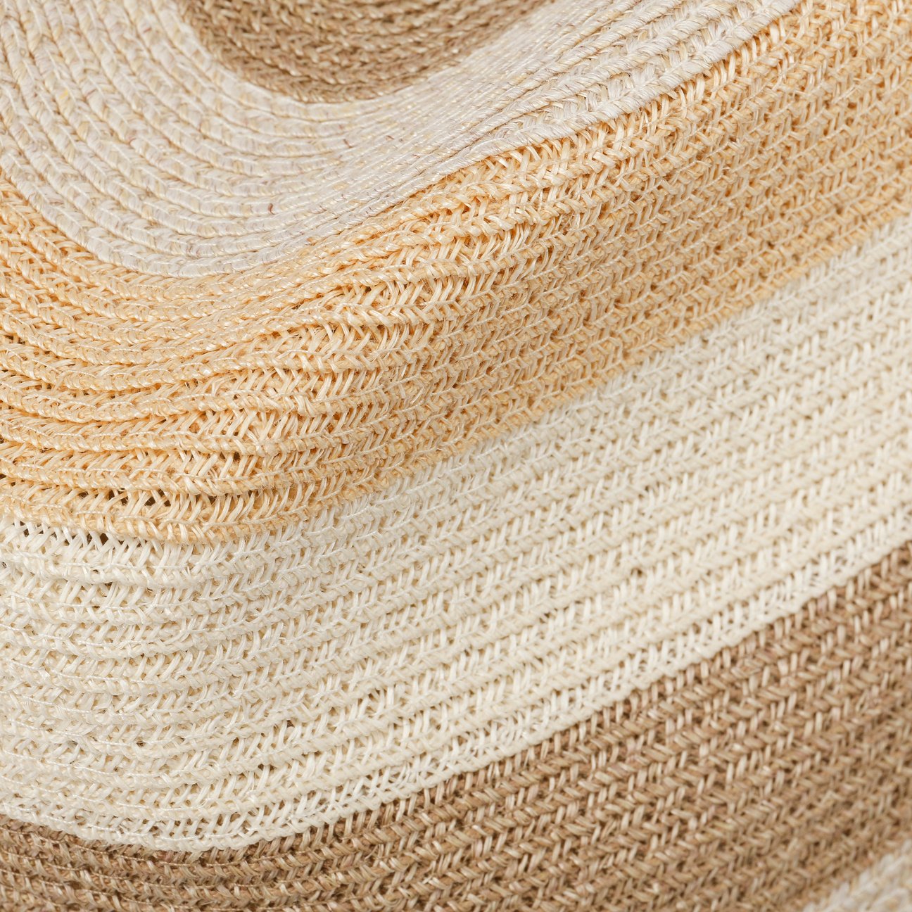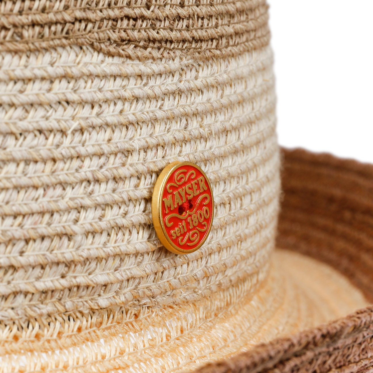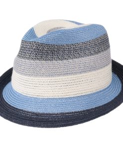Ein auffallend farbenfrohes Design für ein selbstbewusstes Auftreten. Dieser Trilby-Hut überzeugt durch sein modisches Flechtwerk und ist der perfekte Hingucker für moderne Freizeit-Looks. Die breiten, mehrfarbigen Streifen um Kopf und Krempe sind kunstvoll in das Material eingearbeitet, während die nach oben geschlagene Krempe auf der Rückseite zusätzlichen Schwung verleiht. Gefertigt aus Hanf, Baumwolle und Leinen zeigt er sich als Qualitätsprodukt europäischer Herstellung.