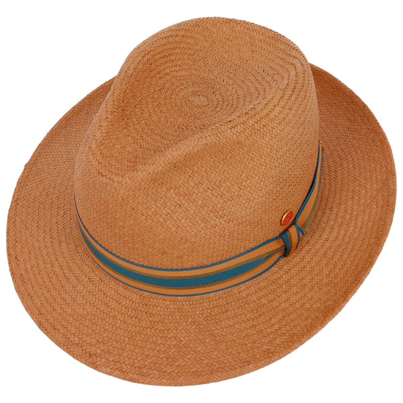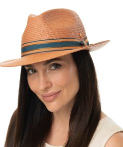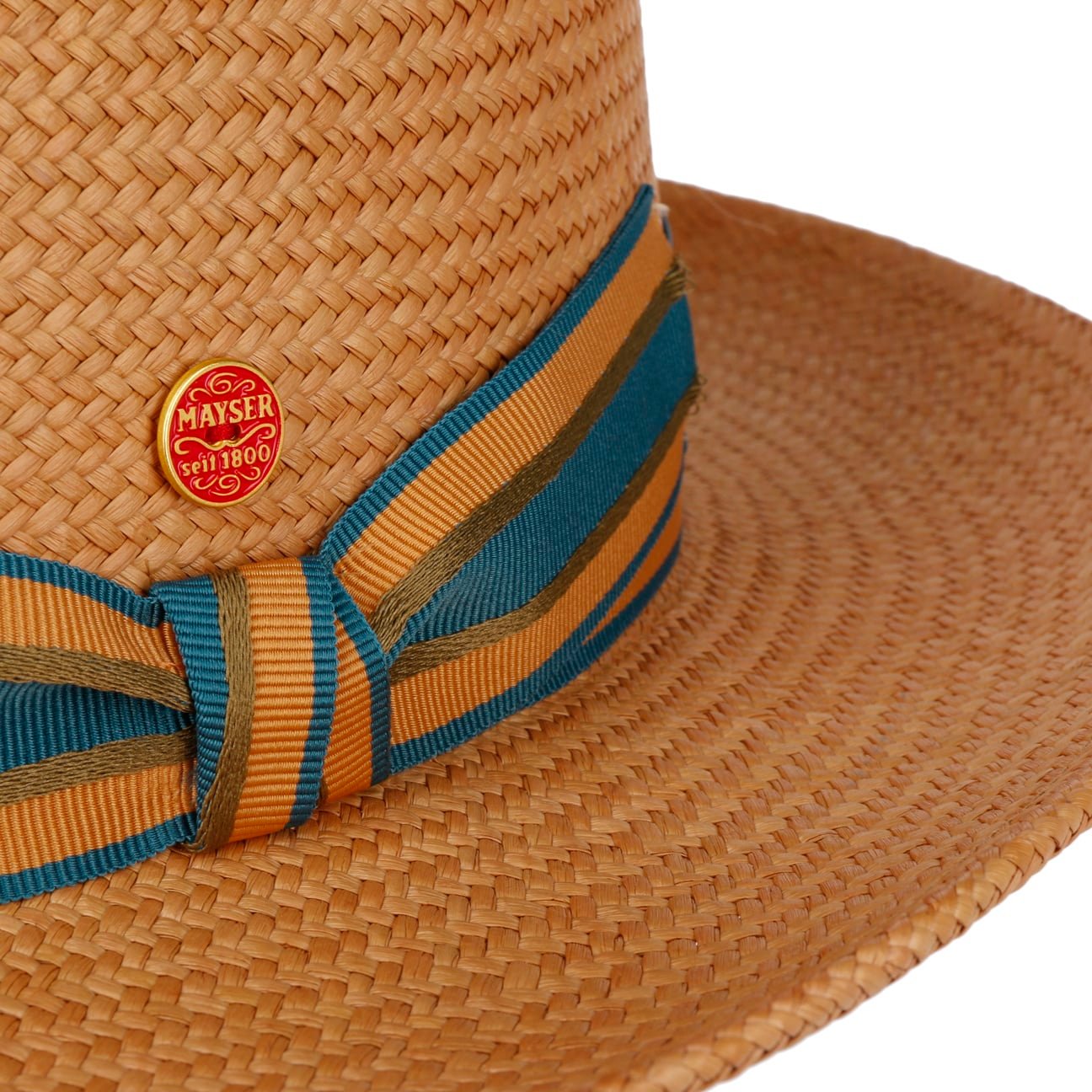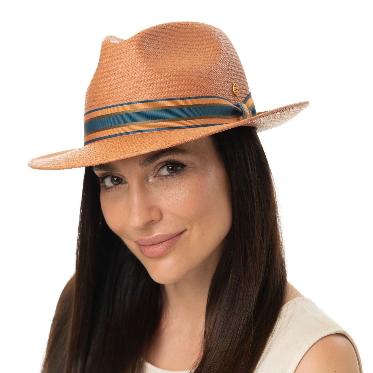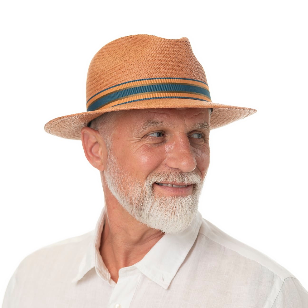 Mit seinem sommerlichen Flair und natürlichen Schimmer, bietet der Bogarthut aus Panamastroh eine elegante Kopfbedeckung. Der einfarbige Strohhut wird durch die farbig gestreifte Ripsbandgarnitur stilvoll hervorgehoben und überzeugt mit seiner eingedellten Krone sowie gerader Krempe. Ein seitlicher Pin und ein Schriftzug in der Krone verleihen dem Hut zusätzliche Eleganz – ideal für Gartenpartys oder Strandbesuche. Das Material besteht zu 100% aus natürlichem Stroh (Panama), was den Tragekomfort erhöht.