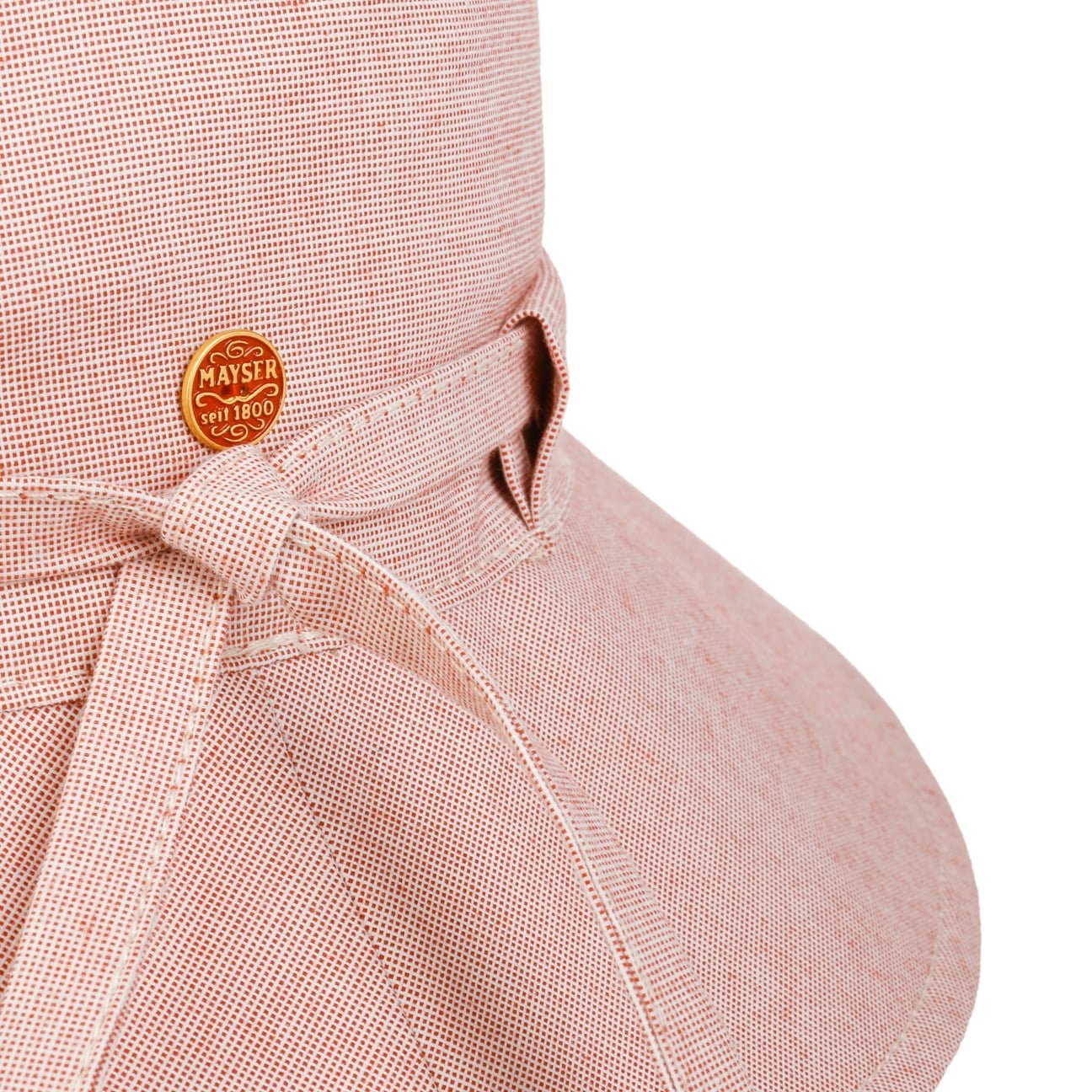 Modisches Highlight mit inneren Werten. In unifarben meliertem Erscheinungsbild zeigt der Bucket Hat von Mayser seinen Sinn für Sommermode. Die entsprechenden Qualitäten erhält er durch atmungsaktive Baumwolle – feuchtigkeitsabsorbierend, hautfreundlich und leicht elastisch verarbeitet sowie mit weichem Griff. Dazu gesellen sich hochwertige innere Werte, denn der Stoffhut verfügt über einen integrierten UV-Schutz 80, geprüft und zertifiziert gemäß der Strahlungsintensität Australiens. Ideal kombinierbar mit einer Vielzahl sommerlicher Outfits.