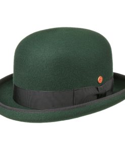 Ein echter Klassiker unter den Hüten ist die Melone. Der runde Herrenhut mit aufgestellter und leicht eingerollter Krempe passt zu jedem Anlass perfekt. Aus hochwertigem Wollfilz gefertigt, bietet er hervorragenden Tragekomfort durch seine temperaturregulierenden und schmutzabweisenden Eigenschaften. Ob für besondere Veranstaltungen, als Bühnenaccessoire, Sammlerstück oder das gewisse Etwas zum edlen Freizeitoutfit – der leichte Filzhut ist immer eine exzellente Wahl. Ein schmaler Paspeleinfass um den Rand und ein feines Ripsfutterband veredeln ihn zusätzlich.