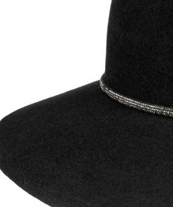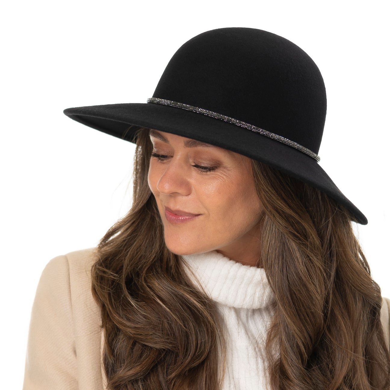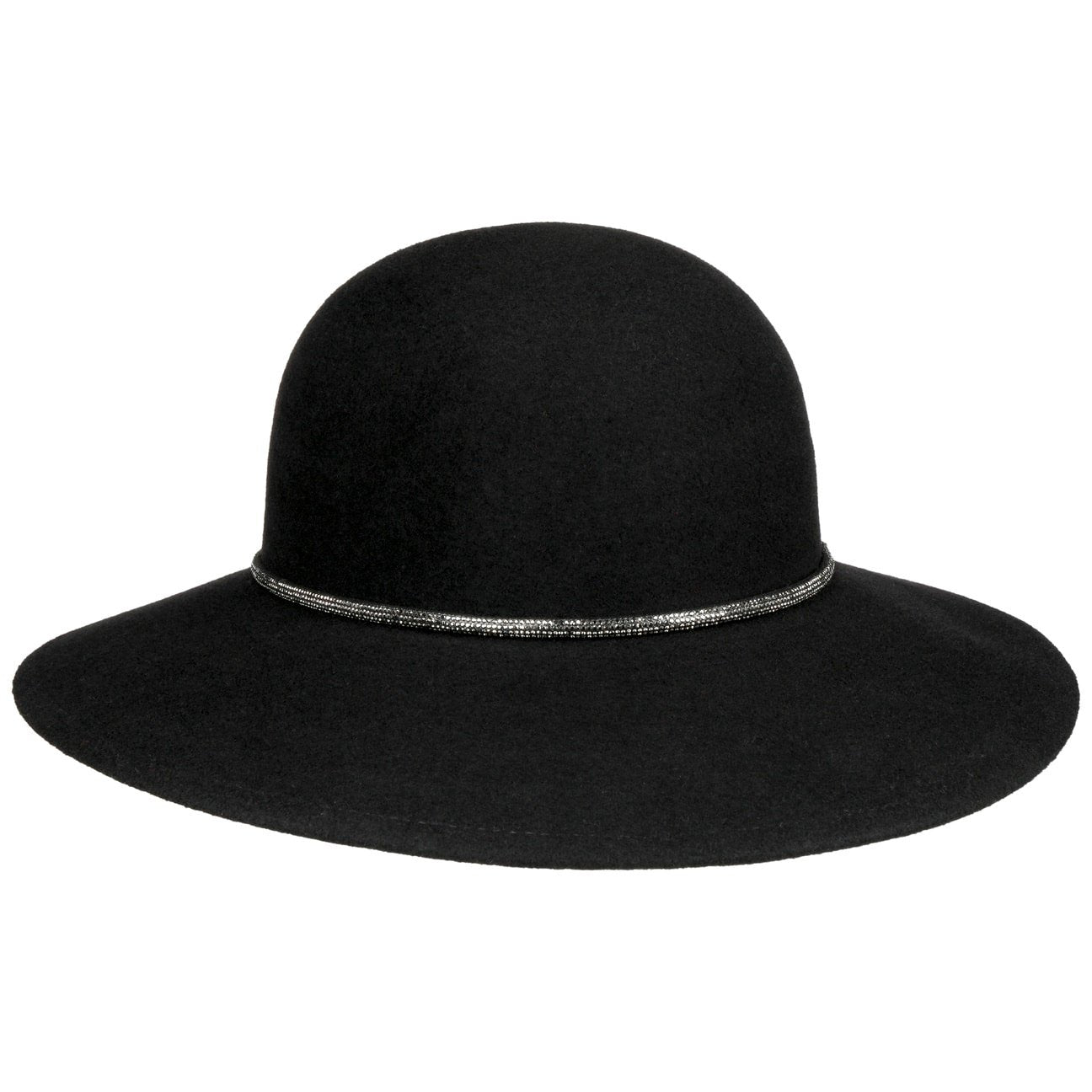 Dieser Damenhut ist ein Ausdruck von Eleganz und Stil. Mit seiner formschönen Krone aus feinster Wolle, gefertigt in der EU, zieht er alle Blicke auf sich. Die leicht abfallende Krempe betont den Augenaufschlag der Trägerin und lässt sie besonders strahlen. Das schörkellose Design wird durch eine zarte Garnitur mit funkelnden Steinchen ergänzt – für einen femininen Touch. Der Hut bietet neben seinem ansprechenden Äußeren auch hohen Komfort: Ein Stretchfutterband sorgt im Inneren für angenehmen Halt. Ob lässig oder elegant gestylt – dieses Accessoire rundet jedes Outfit perfekt ab.